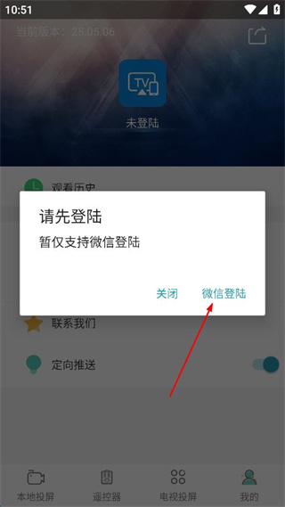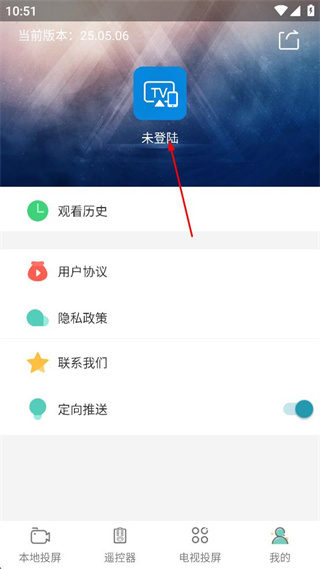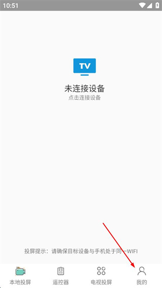 1、打開投屏軟件,點(diǎn)擊右下角“我的”按鈕,進(jìn)入個(gè)人界面。