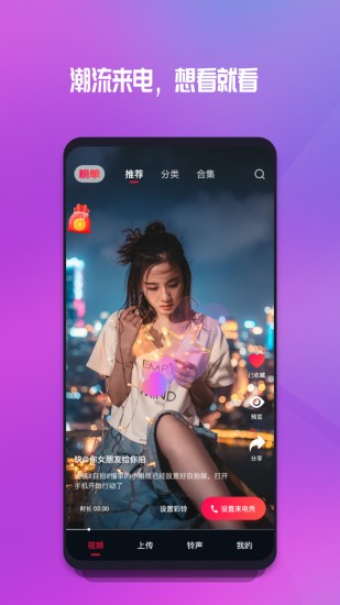 炫目來電秀app提供了多種不同素材,用戶可按照自身喜好來輕松挑選你所喜歡的,是一款集手機來電視頻與手機壁紙美化于一體的實用性軟件,在這里,你可以體驗時下流行的玩法,緊握時尚脈搏,走在流行前列。歡喜來電秀,讓你的來電屏幕更豐富、更有趣。