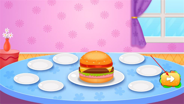 4、完成漢堡制作后進(jìn)入展示頁面,查看成品并準(zhǔn)備進(jìn)行后續(xù)操作。