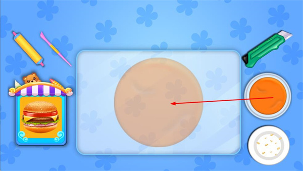 2、在選擇頁面點(diǎn)擊漢堡對(duì)應(yīng)的選項(xiàng),進(jìn)入粘土漢堡的制作場(chǎng)景。