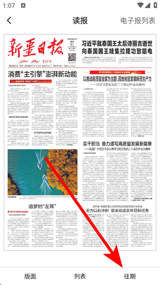 3、在讀報(bào)的界面,需要點(diǎn)擊往期的選項(xiàng),彈出日期的選擇框。