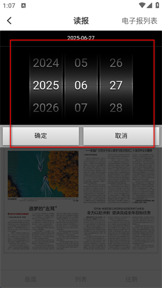 4、擇目標(biāo)日期后點(diǎn)擊確定,即可查看對(duì)應(yīng)日期的往期報(bào)紙,完成使用操作。