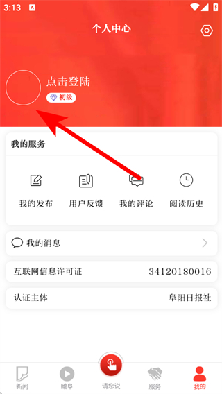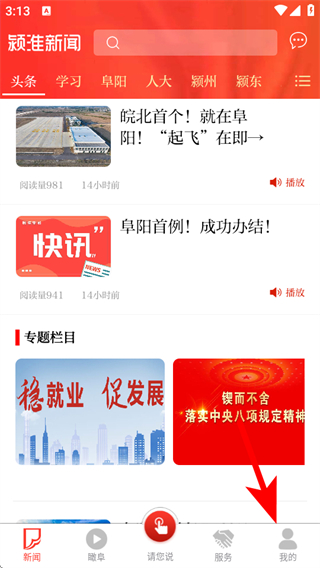 1、打開潁淮新聞APP,點擊底部導(dǎo)航欄的我的,進入個人中心頁面。