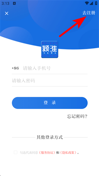 3、在登錄的界面,點擊右上角的去注冊的按鈕,進入注冊的頁面。