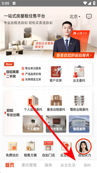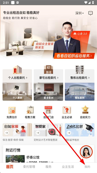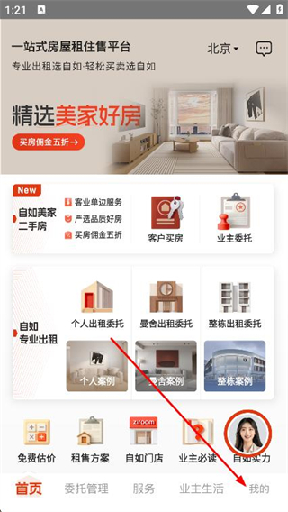 1、在自如業(yè)主app首頁,點擊右下角我的選項,進入個人中心頁面。