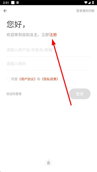3、在登錄注冊界面,點擊注冊選項,進入注冊流程。
