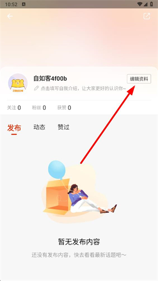 2、進入對應(yīng)頁面后,找到編輯資料按鈕并點擊,跳轉(zhuǎn)至編輯個人資料的操作界面。