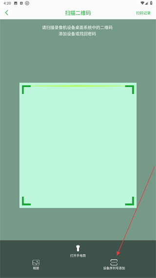 2、進(jìn)入掃描二維碼的頁(yè)面內(nèi),點(diǎn)擊右下序列號(hào)添加的按鈕。