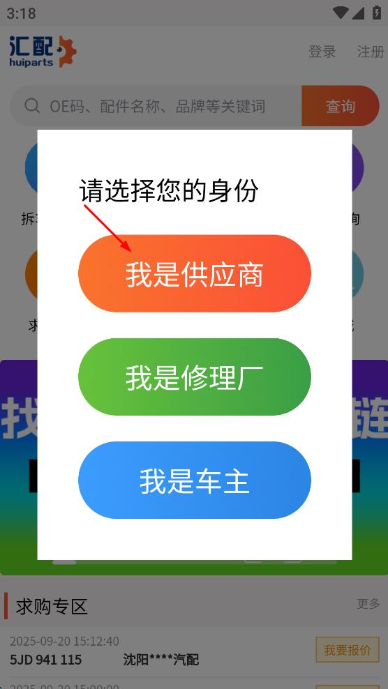 1、打開匯配軟件,在彈出的“請選擇您的身份”提示框中,根據(jù)自身情況選擇對應(yīng)的身份選項(xiàng),進(jìn)入軟件首頁。