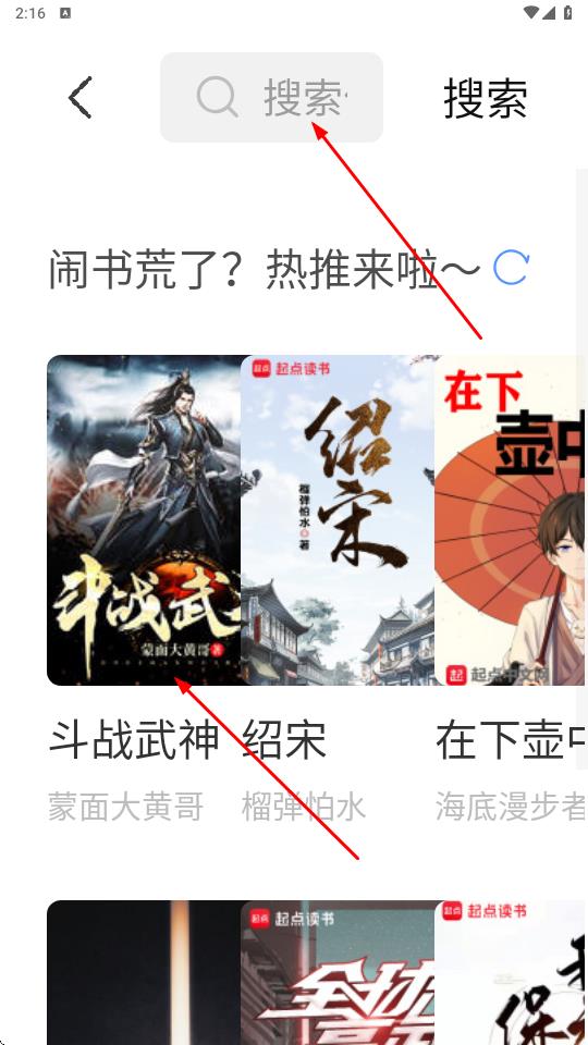 1、打開(kāi)奇墨小說(shuō)APP,進(jìn)入搜索界面,點(diǎn)擊頂部搜索欄,輸入想要查找的小說(shuō)關(guān)鍵詞如斗戰(zhàn),進(jìn)行搜索。