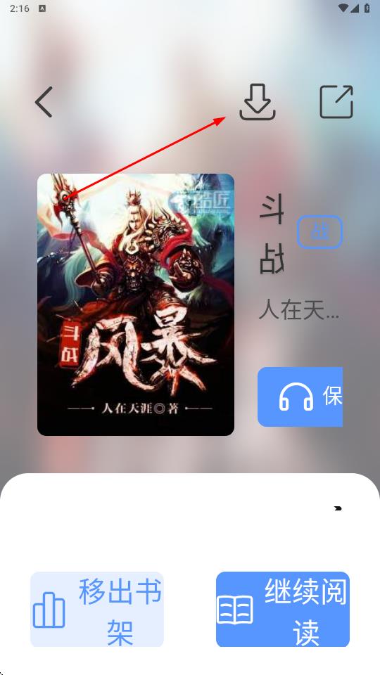 3、在小說(shuō)詳情頁(yè)面,點(diǎn)擊頁(yè)面上類(lèi)似下載標(biāo)識(shí)的按鈕,導(dǎo)入本地書(shū)源文件,一般在書(shū)架或我的頁(yè)面中尋找導(dǎo)入書(shū)籍或本地導(dǎo)入。