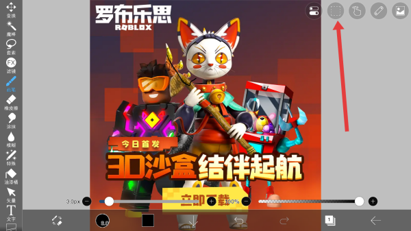 1、在ibisPaint界面右上角點(diǎn)擊網(wǎng)格狀圖標(biāo),展開功能菜單,可獲取復(fù)制、選區(qū)等圖像編輯操作選項(xiàng),為后續(xù)處理做準(zhǔn)備。