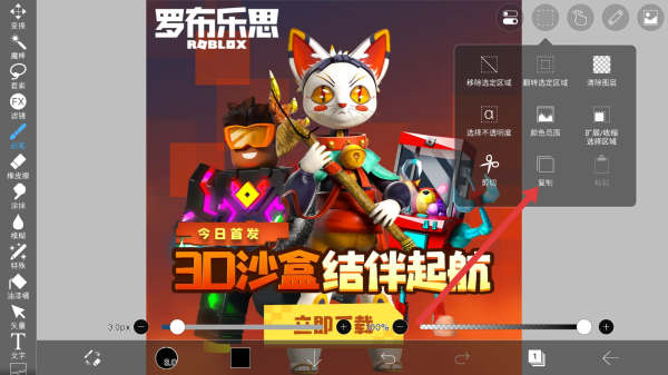 2、功能菜單展開后,點(diǎn)擊復(fù)制選項(xiàng),對當(dāng)前編輯的圖像內(nèi)容執(zhí)行復(fù)制操作,以便后續(xù)復(fù)用該圖像元素。