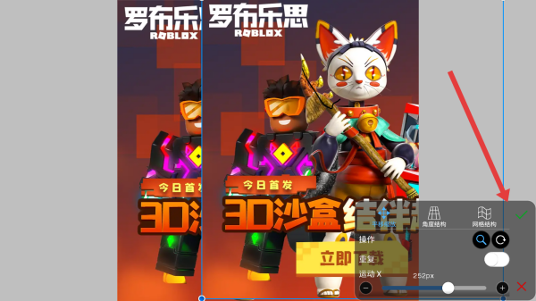 3、復(fù)制后粘貼生成圖層副本,調(diào)整位置后點(diǎn)擊右下角勾選按鈕,完成圖層復(fù)制操作,實(shí)現(xiàn)圖像的復(fù)制效果。