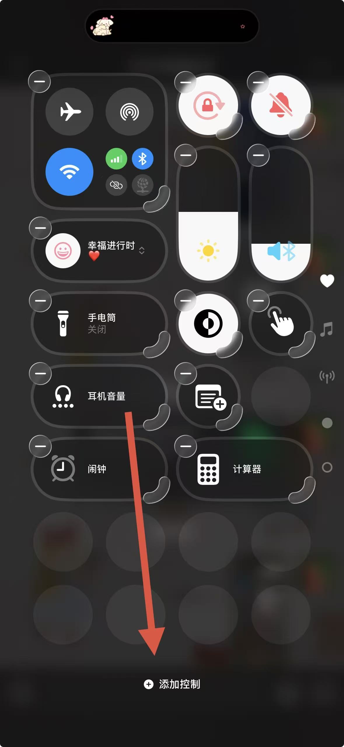 1、打開手機(jī)控制中心,點(diǎn)擊下方添加控制選項進(jìn)入控制添加頁面。