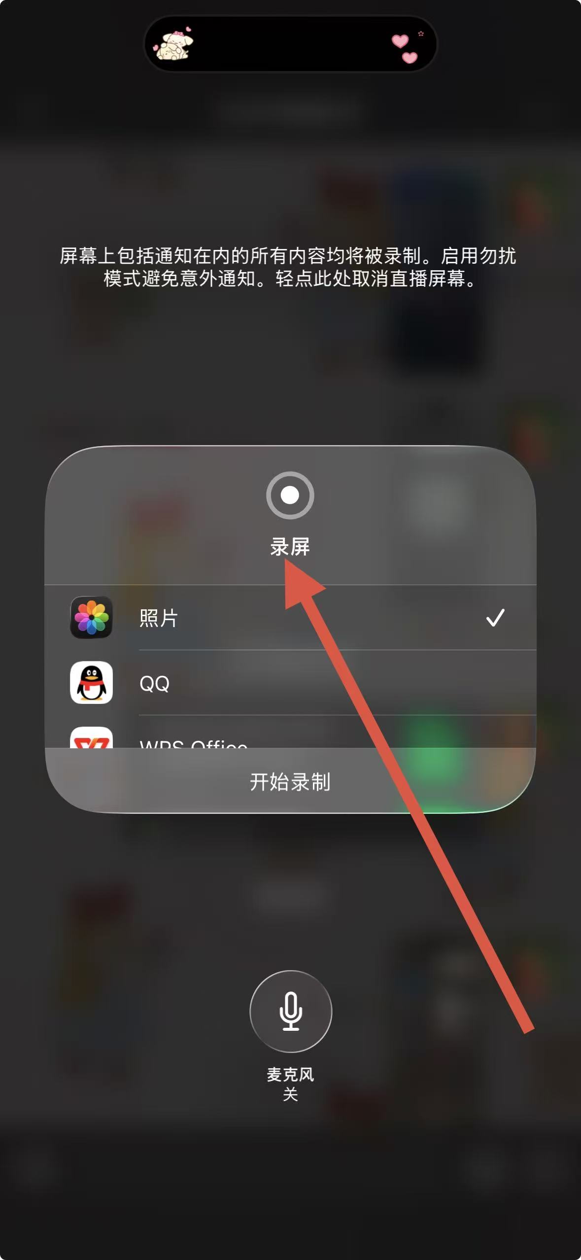 1.單擊控制中心屏幕底部的圖標(biāo)屏幕錄像機(jī)。