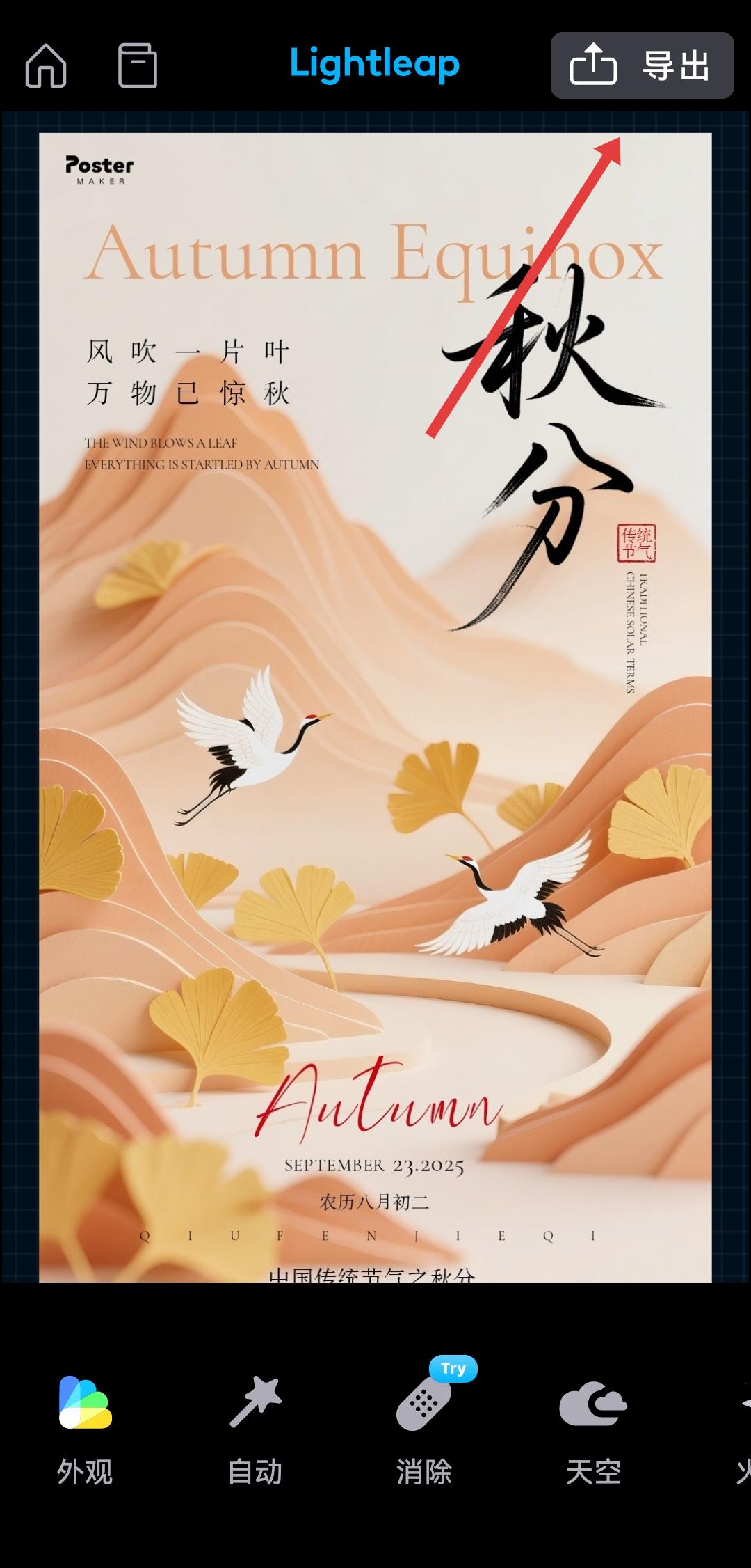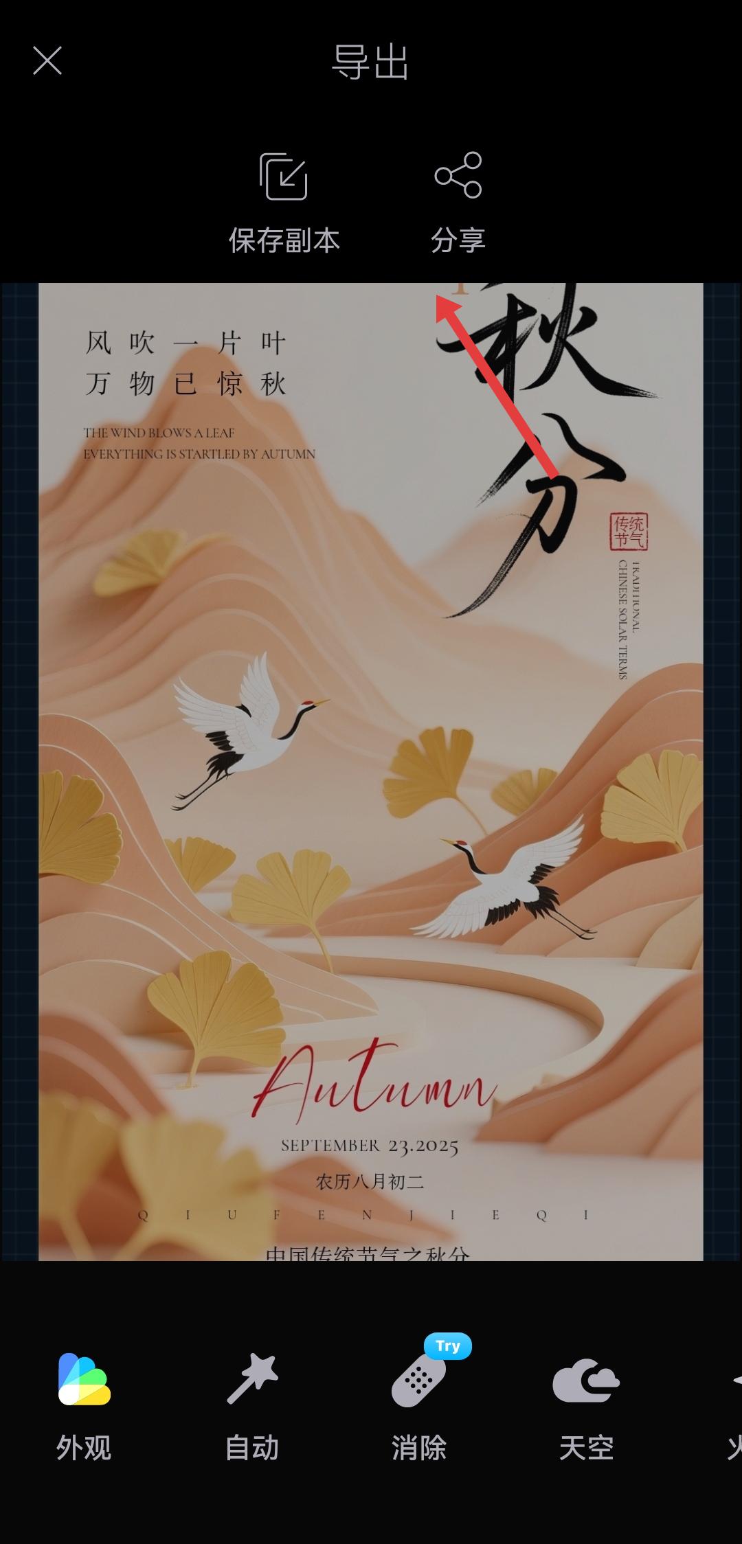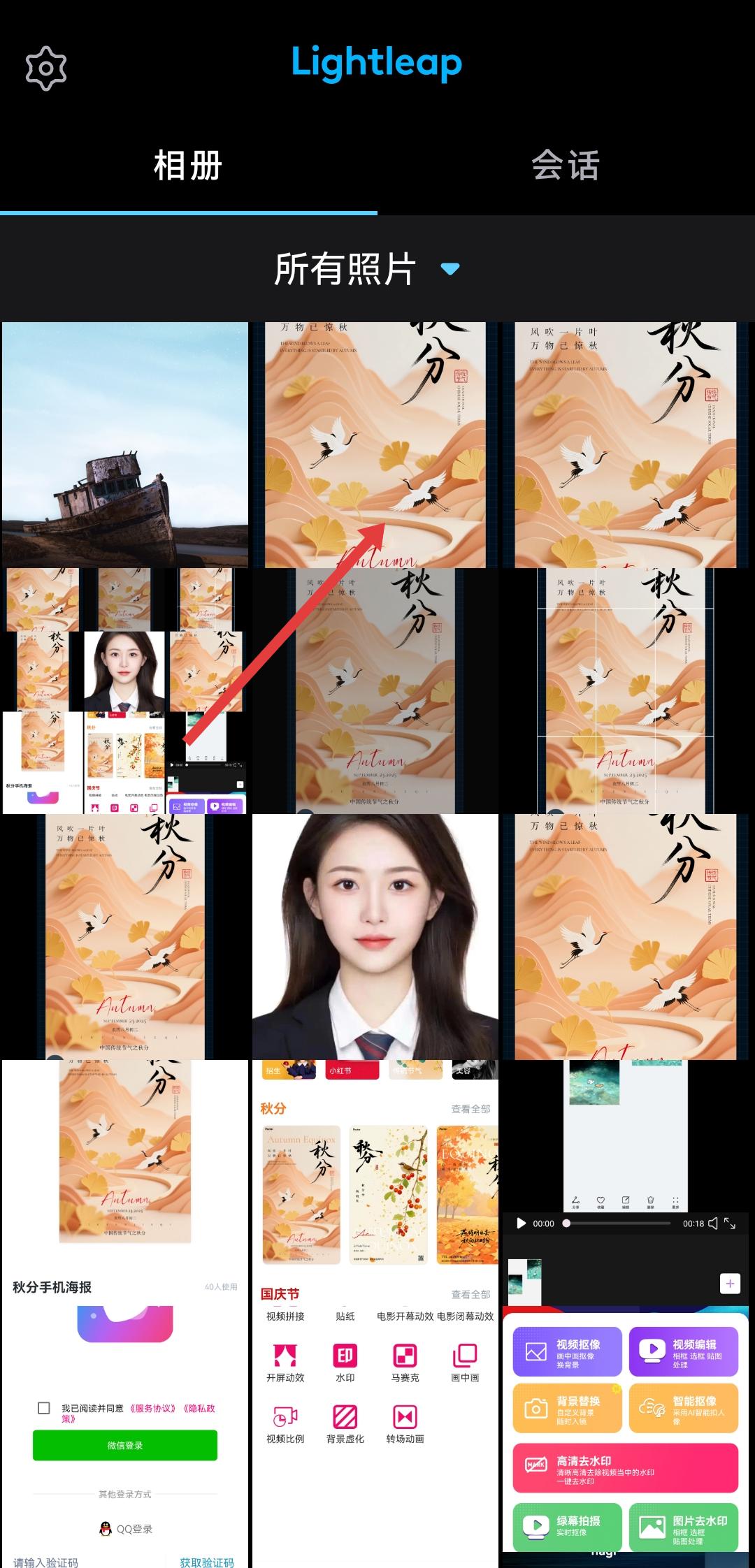 2、在照片選擇界面,點(diǎn)擊需要導(dǎo)入的照片如示例中的秋分主題海報(bào)圖片。