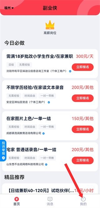 1、打開副業(yè)俠APP,點擊右下角我的,進入個人頁面。