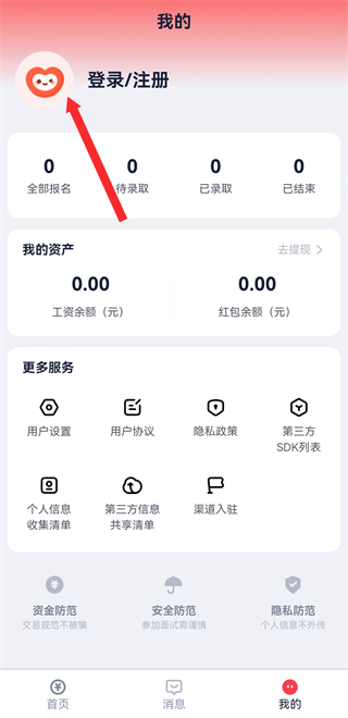 2、在個人頁面中,點擊登錄/注冊,進入登錄界面。