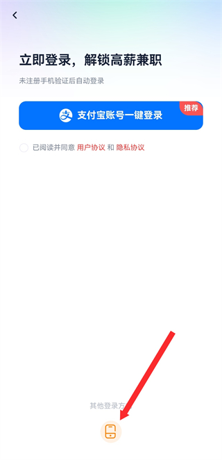3、在登錄界面,點擊下方的手機號登錄圖標,進入手機登錄頁面。