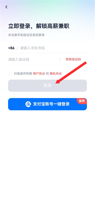 4、在登錄頁面,輸入手機號等信息后點擊登錄,完成新賬號的注冊。