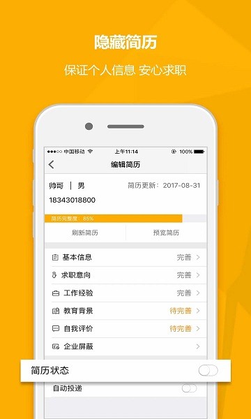 【企業(yè)屏蔽】保證個(gè)人信息,安心求職。