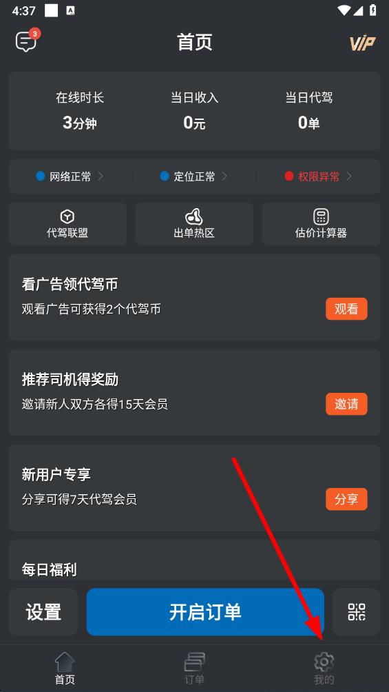 1、打開代駕計價助手app,在首頁界面,點(diǎn)擊底部導(dǎo)航欄最右側(cè)的我的選項(xiàng),進(jìn)入個人相關(guān)功能頁面。