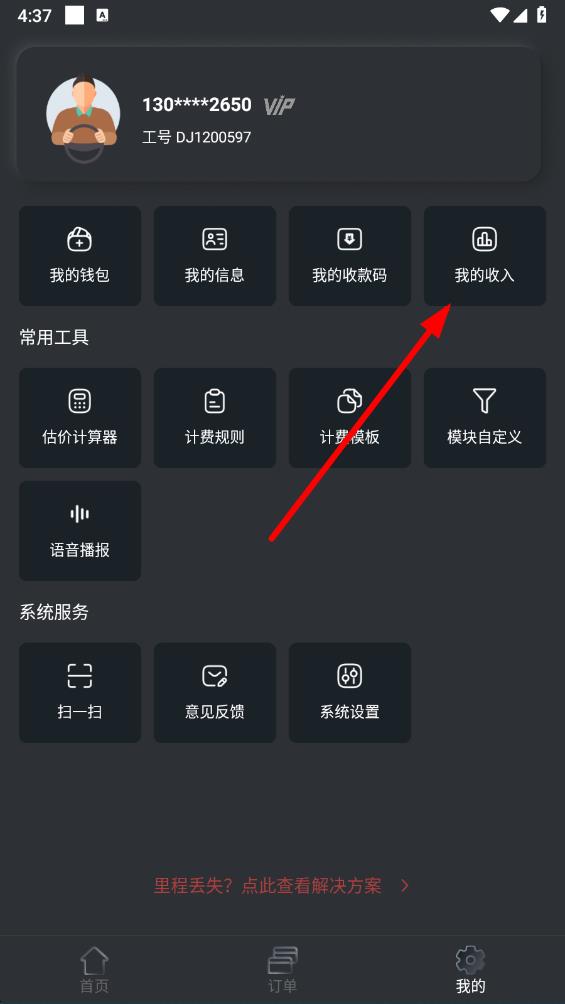 2、在我的頁面中,找到并點(diǎn)擊我的收入選項(xiàng),進(jìn)入收入信息查看頁面。