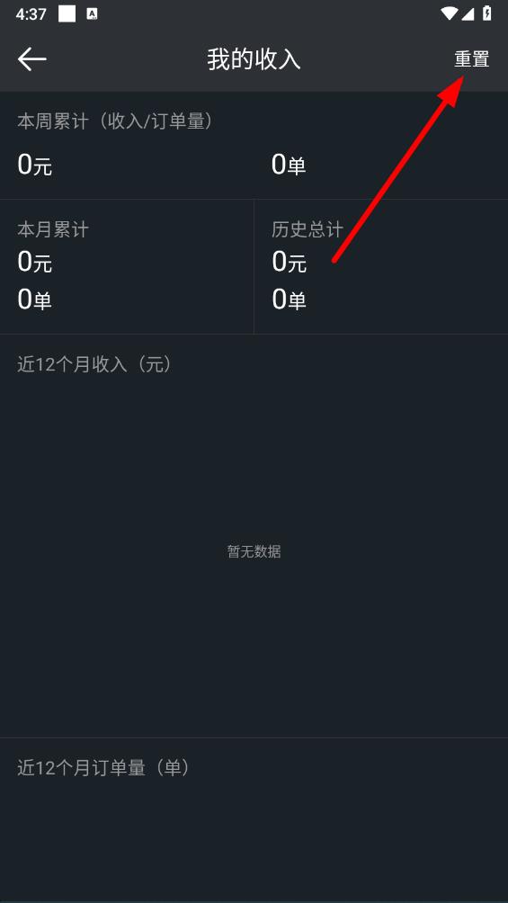 3、在我的收入頁面的右上角,點(diǎn)擊重置按鈕。
