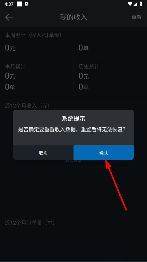 4、點(diǎn)擊重置后,會彈出系統(tǒng)提示框,點(diǎn)擊確認(rèn)按鈕,即可完成收入信息的重置。
