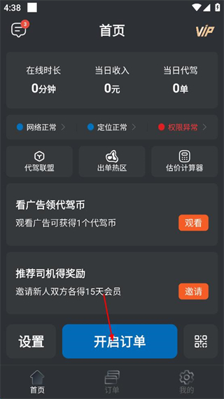 3、登錄后進(jìn)入首頁,點(diǎn)擊開啟訂單。