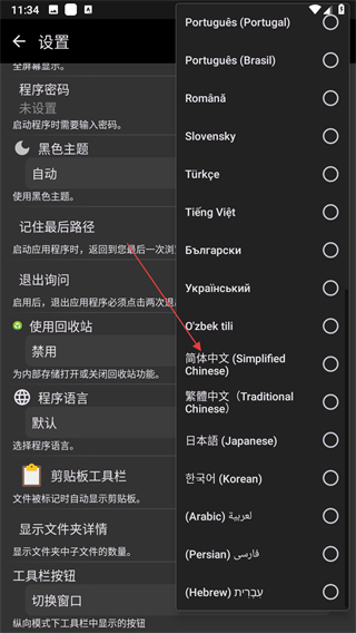 4、在語(yǔ)言選擇列表中,找到并點(diǎn)擊簡(jiǎn)體中文選項(xiàng),即可切換為中文。