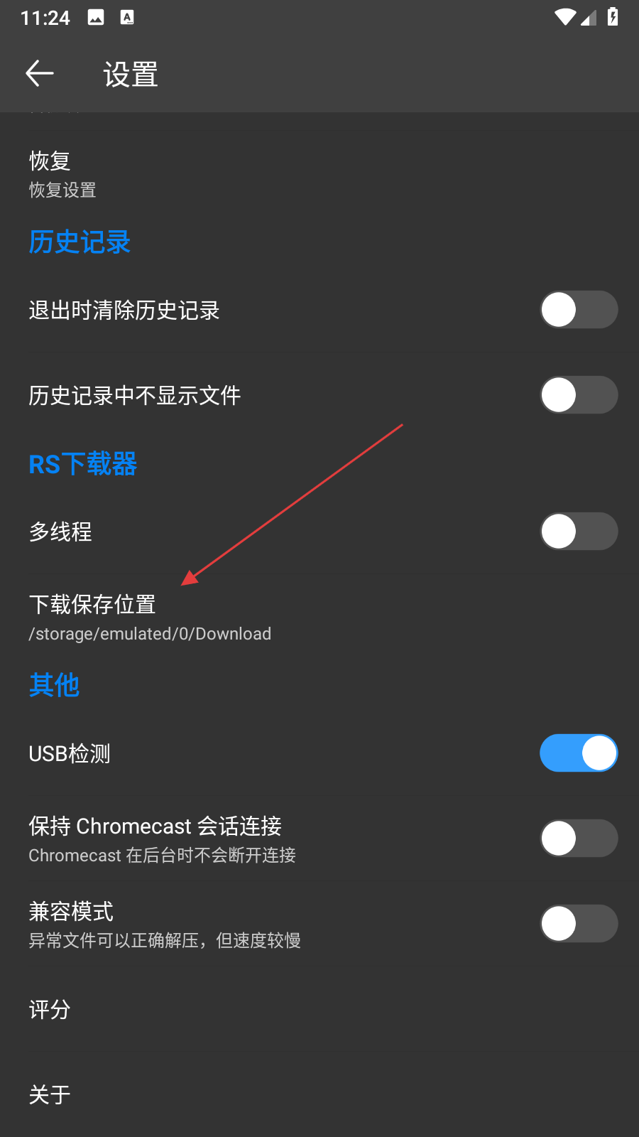 3、在設(shè)置界面中,點(diǎn)擊下載保存位置選項(xiàng),彈出下載保存位置選擇對(duì)話框。