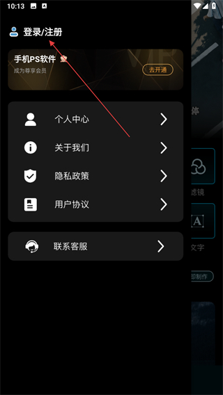 1、打開(kāi)手機(jī)PS應(yīng)用,點(diǎn)擊左上角的用戶圖標(biāo)。
