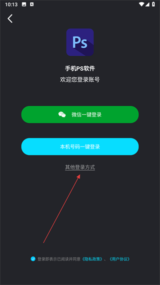 3、進(jìn)入登錄頁(yè)面后,點(diǎn)擊其他登錄方式選項(xiàng)。