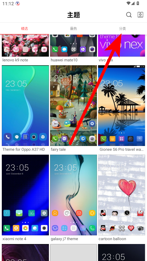 2、在主題界面,點(diǎn)擊分類選項(xiàng),查看各類主題。