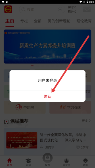 1、首頁彈出用戶未登錄提示框,點(diǎn)擊確認(rèn),進(jìn)入登錄流程環(huán)節(jié)。
