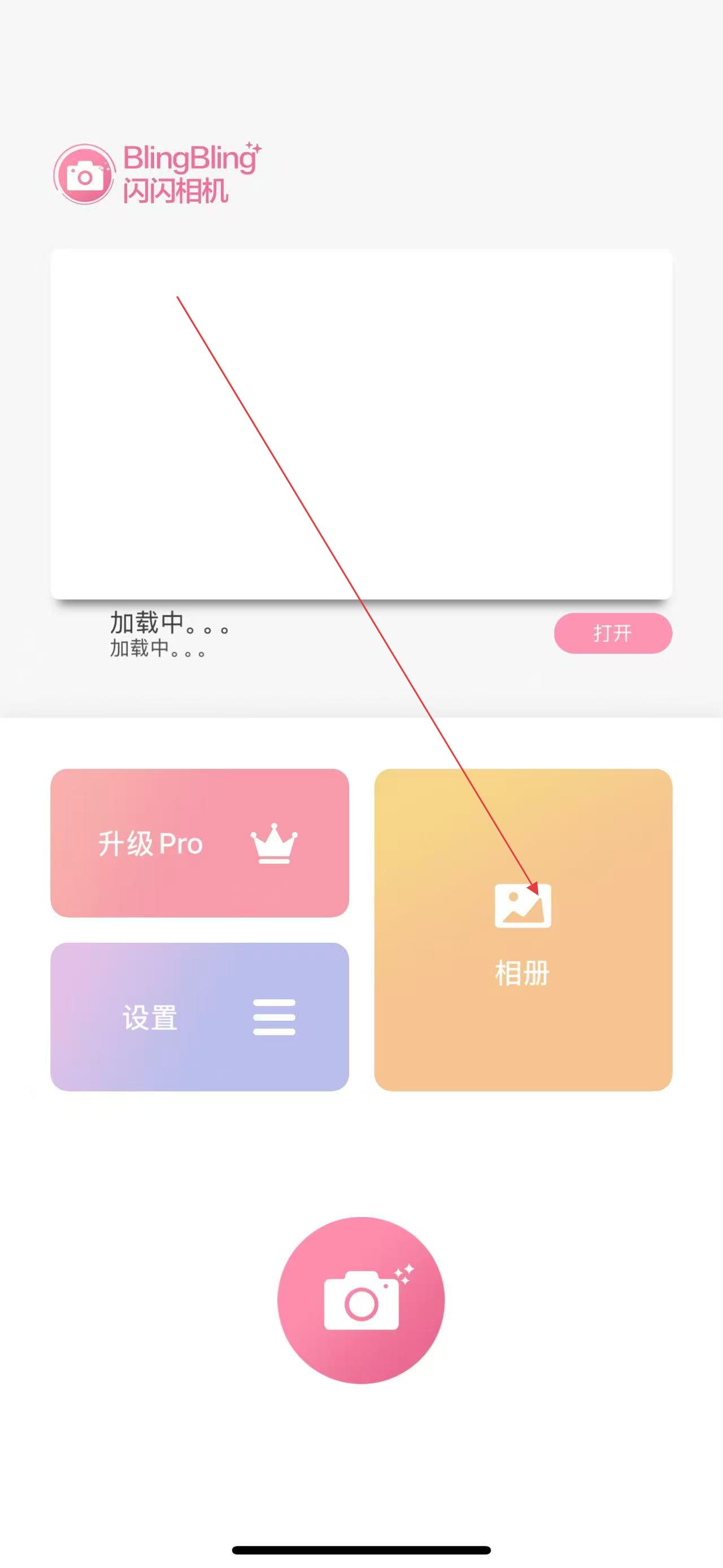 1、打開(kāi)閃閃相機(jī)應(yīng)用,點(diǎn)擊主界面中的相冊(cè)按鈕,選擇想要添加亮晶晶效果的照片。