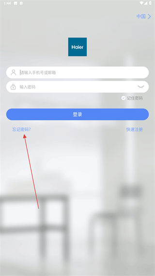 1、打開海爾攝像頭的應用APP,進入時點擊左側忘記密碼的按鈕。