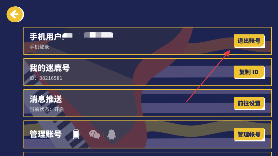 2、進(jìn)入設(shè)置界面后,找到手機(jī)用戶信息欄,點擊右側(cè)的退出賬號按鈕。