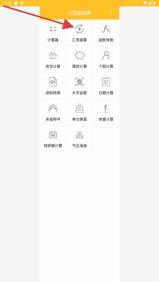 1、啟動萬能計算器APP,進入到首頁內(nèi)點擊匯率換算的功能按鈕。