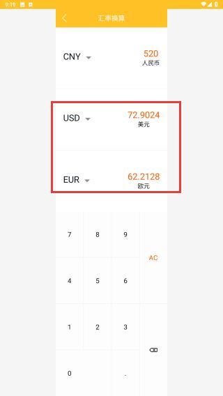3、輸入后會自動呈現(xiàn)美元、歐元的換算金額。