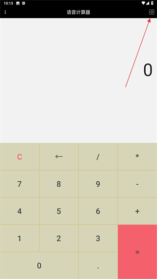 1、打開(kāi)語(yǔ)音計(jì)算器APP,在首頁(yè)內(nèi)點(diǎn)擊右上角的功能圖標(biāo),