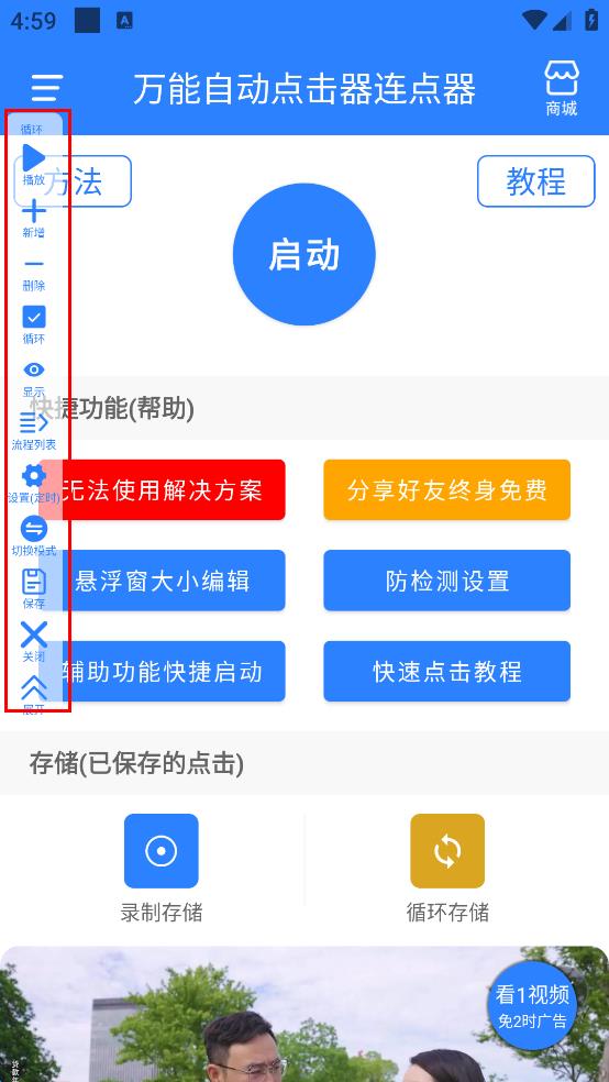 4、完成功能設(shè)置后,萬(wàn)能自動(dòng)點(diǎn)擊器連點(diǎn)器APP即可按照設(shè)置進(jìn)行自動(dòng)點(diǎn)擊等操作,后續(xù)可根據(jù)使用情況在左側(cè)功能欄調(diào)整相關(guān)設(shè)置。