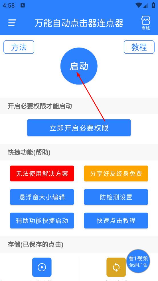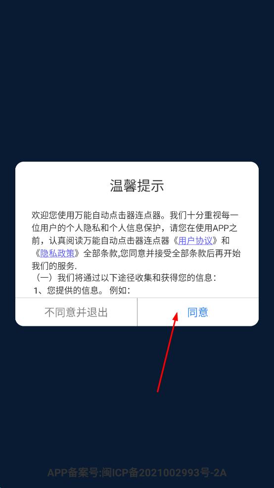 1、打開(kāi)萬(wàn)能自動(dòng)點(diǎn)擊器連點(diǎn)器APP,在溫馨提示頁(yè)面,點(diǎn)擊同意,進(jìn)入APP主界面后,點(diǎn)擊立即開(kāi)啟必要權(quán)限。