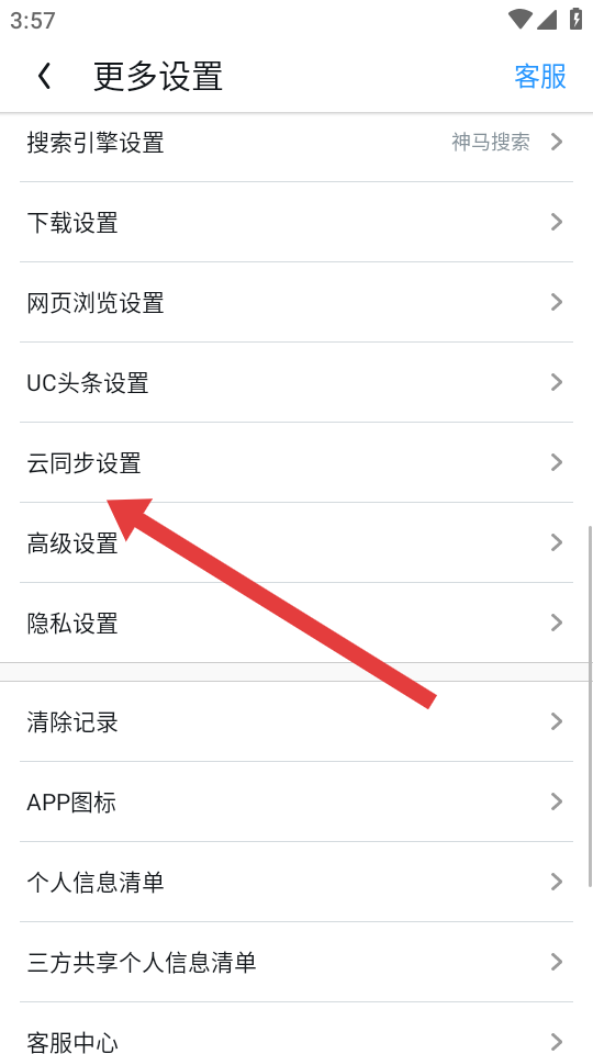2、在更多設(shè)置的頁面中,找到并點擊云同步設(shè)置的選項,進入云同步功能的具體設(shè)置界面。