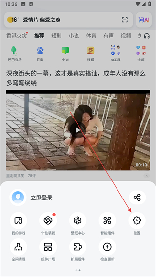 2、在功能面板中,找到設(shè)置選項并點擊,進入瀏覽器的設(shè)置界面。