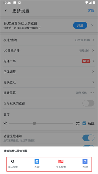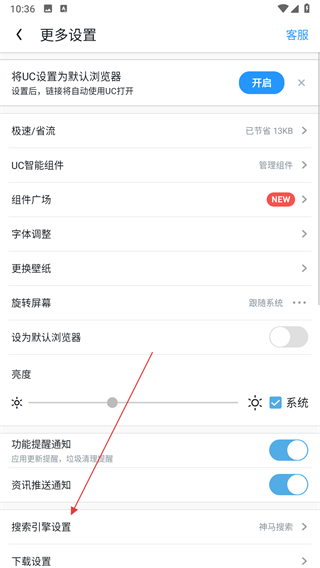 3、在設(shè)置界面里,找到搜索引擎設(shè)置選項并點擊,進入搜索引擎選擇。