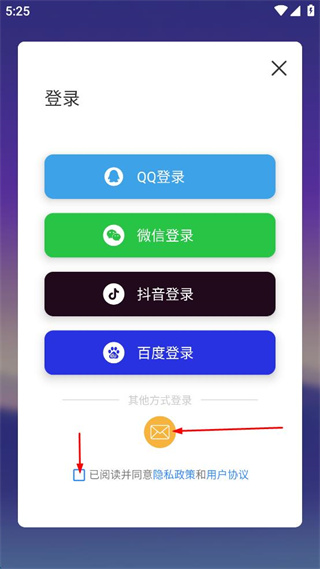 2、勾選已閱讀并同意相關(guān)協(xié)議,選擇郵箱登錄方式,進(jìn)入郵箱登錄頁(yè)面。