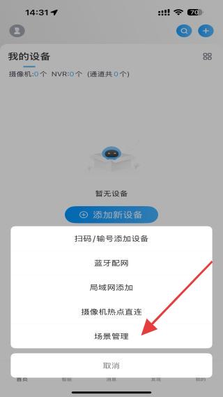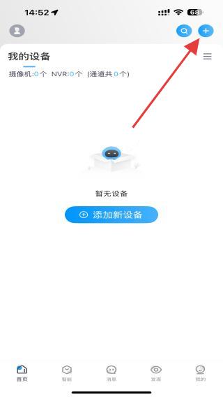1、打開cloudsee攝像頭app,進(jìn)入首頁內(nèi)點(diǎn)擊右上角+號(hào)的圖標(biāo)